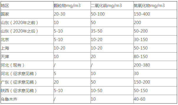 我國已出臺的部分地區(qū)燃氣鍋爐排放標(biāo)準(zhǔn)匯總